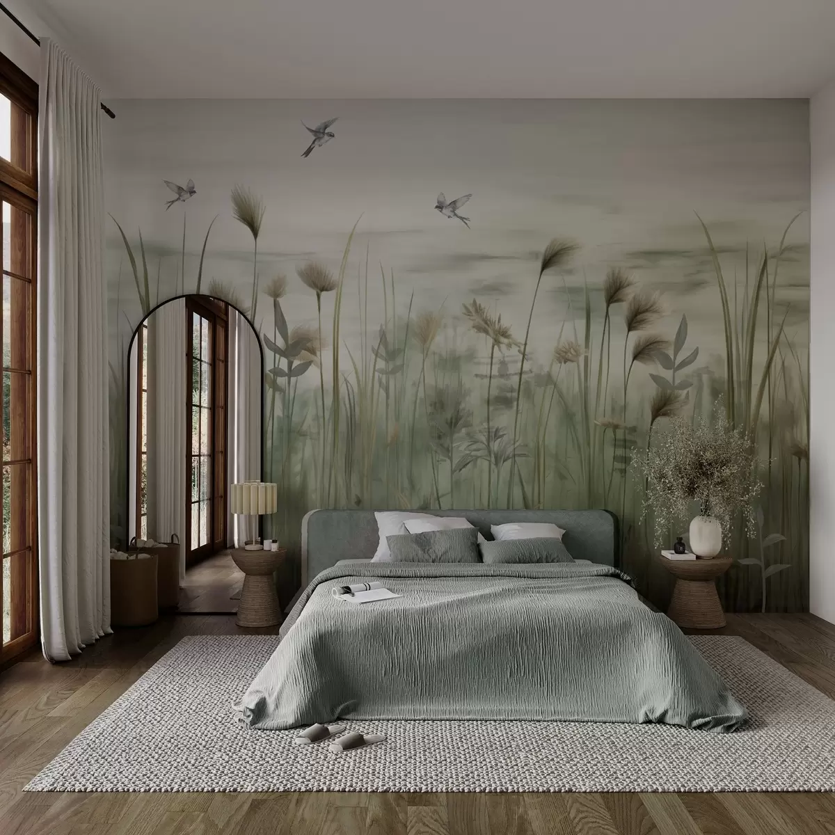 Тапете за зид Лагана верзија травнатог пејзажа са ластавицама бр. w04258