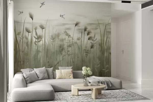 Тапете за зид Лагана верзија травнатог пејзажа са ластавицама бр. w04258