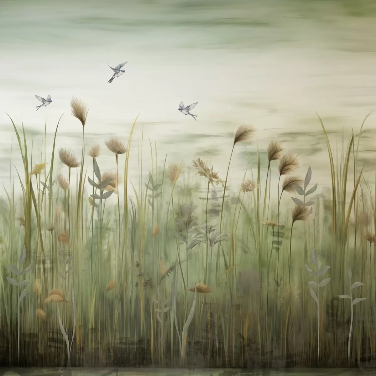 Тапете за зид Травнати пејзаж са ластама уз меко небо бр. w04258v1