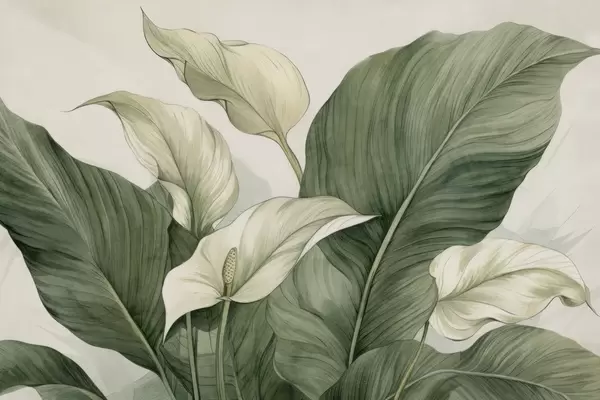 Тапете за зид Крупни план цветајућег спатифилума са великим листовима бр. w04263