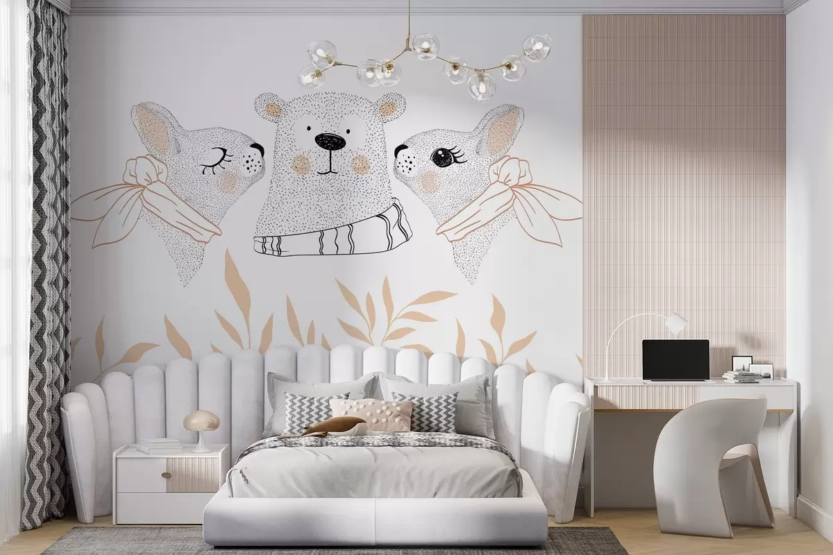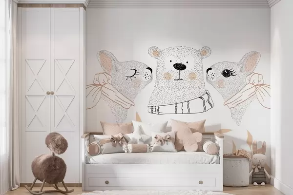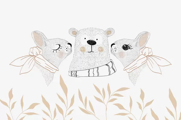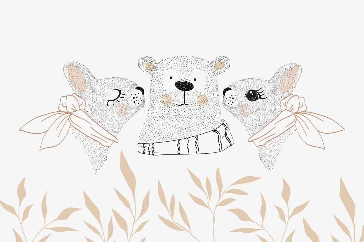 Тапете за зид Смешне животиње, зечеви и младунче медведа бр. w04269