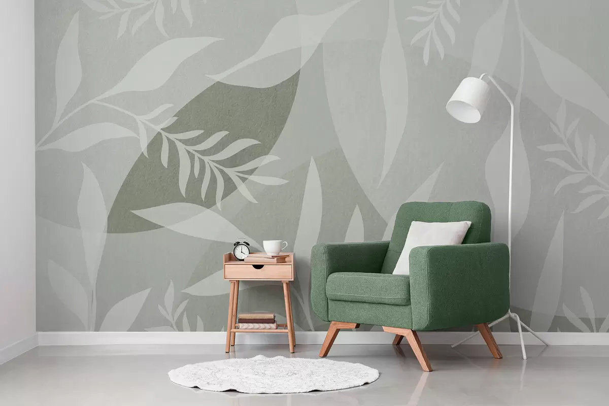 Тапете за зид Силуете гранчица на позадини апстрактних кругова, нијансе зелене бр. w04270v2