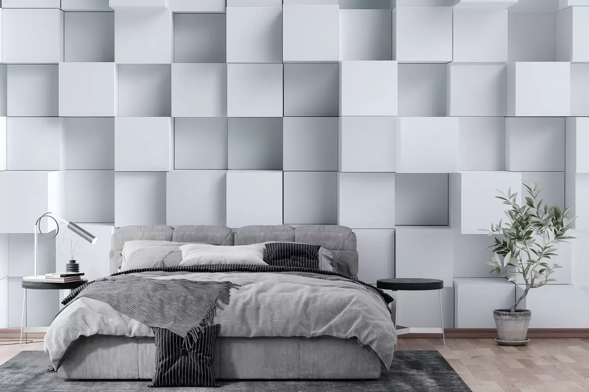 Тапете за зид имитација волуметријских белих коцки бр. w04283