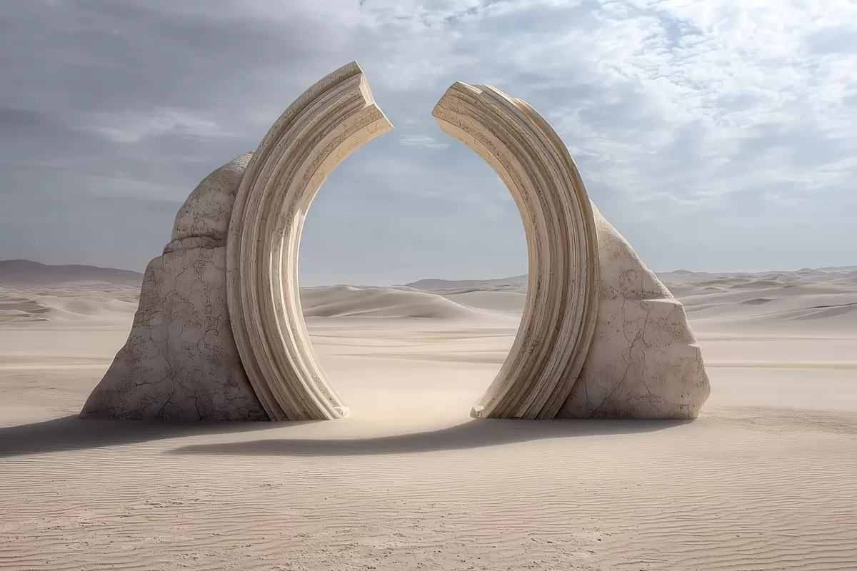 Тапете за зид надреалистички пустињски пејзаж са великим архитектонским луком бр. w04284