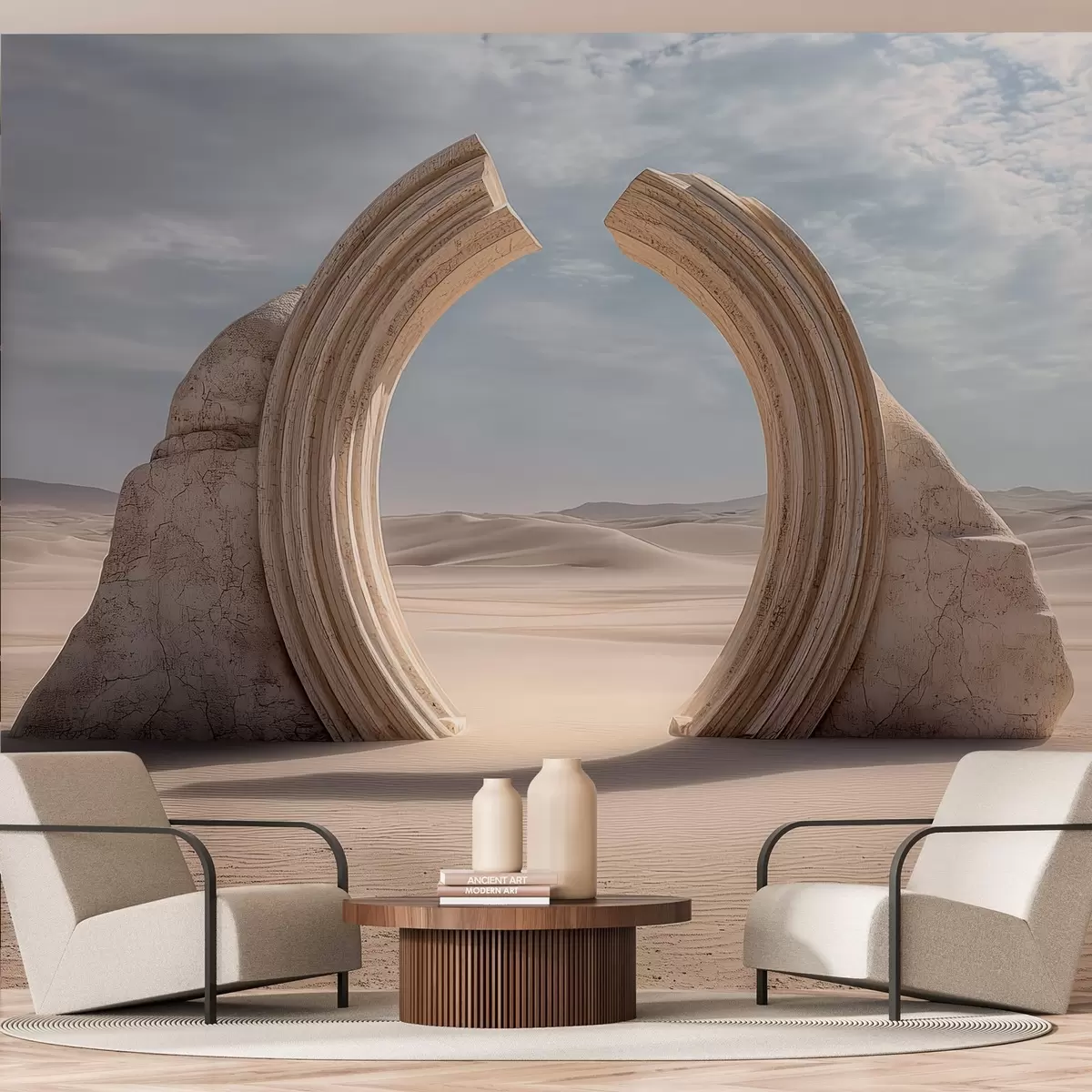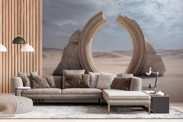 Тапете за зид надреалистички пустињски пејзаж са великим архитектонским луком бр. w04284
