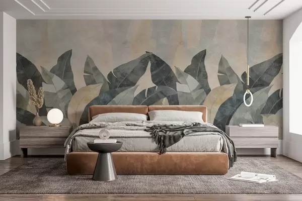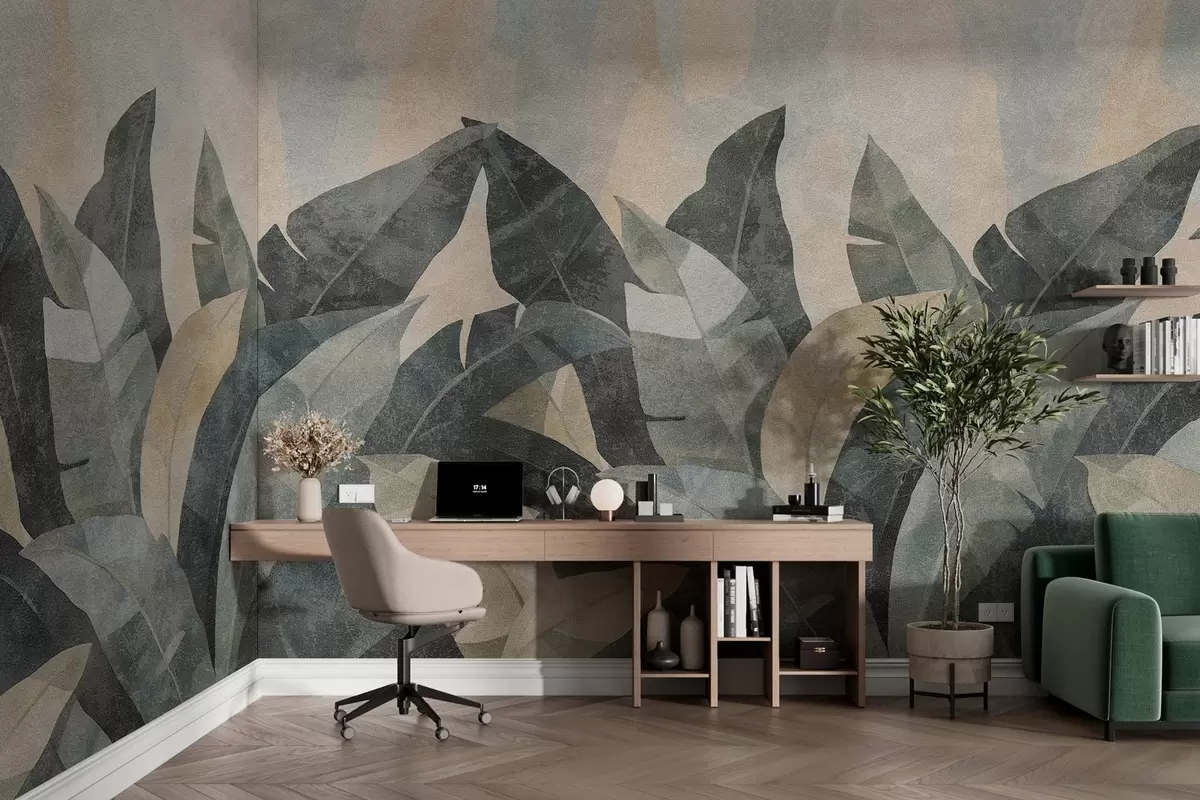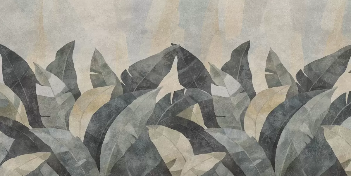wall murals текстурирани листови банане у природним нијансама беж, зелене и сиве w04285