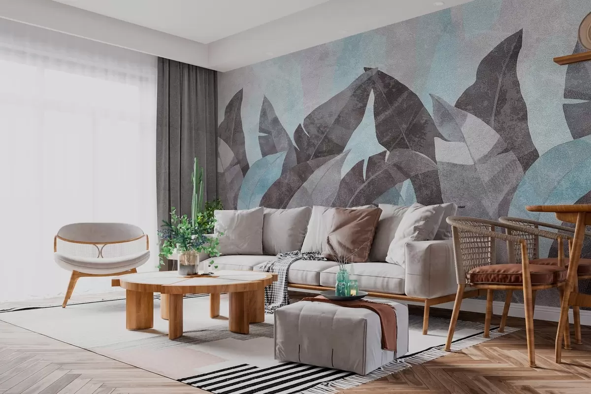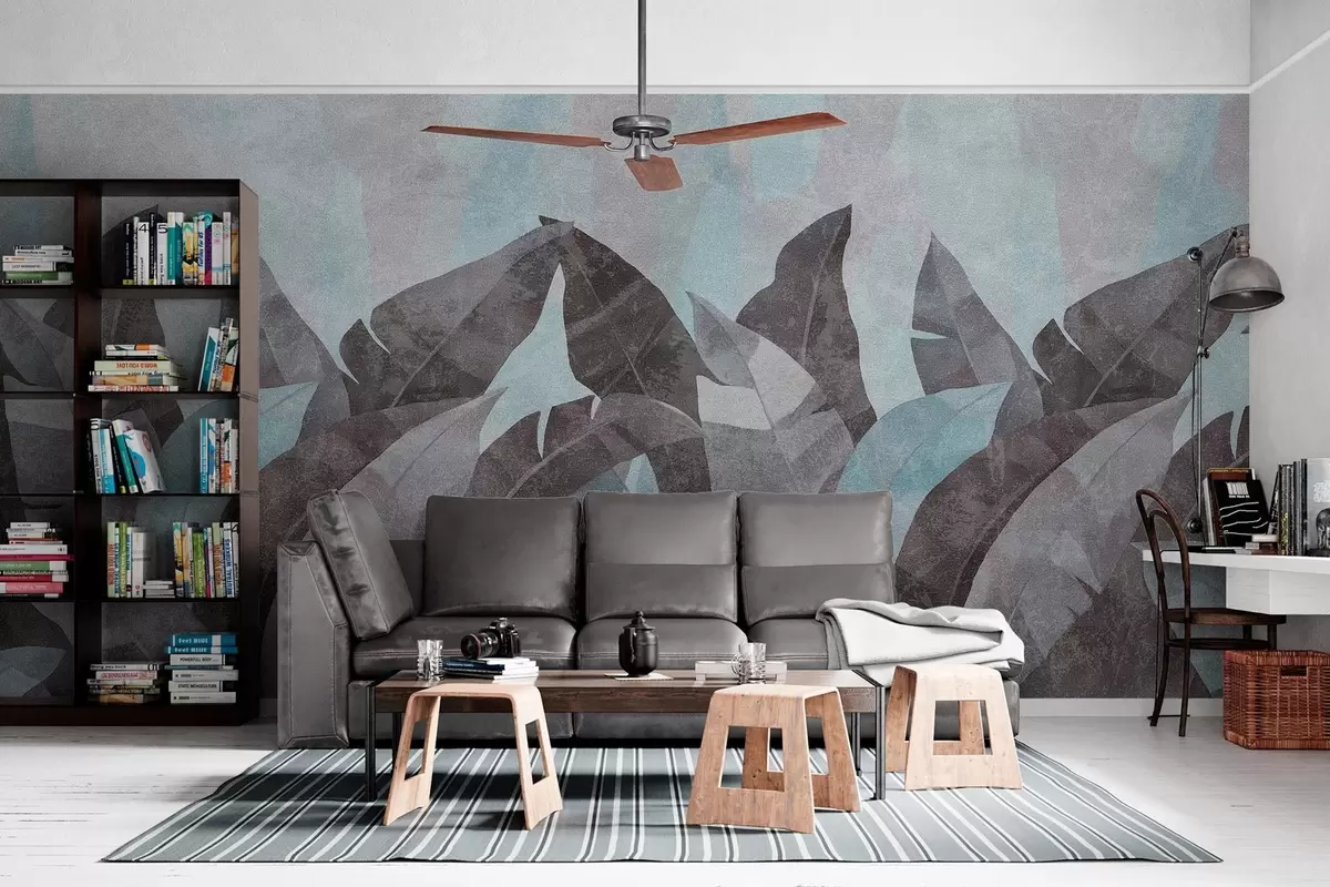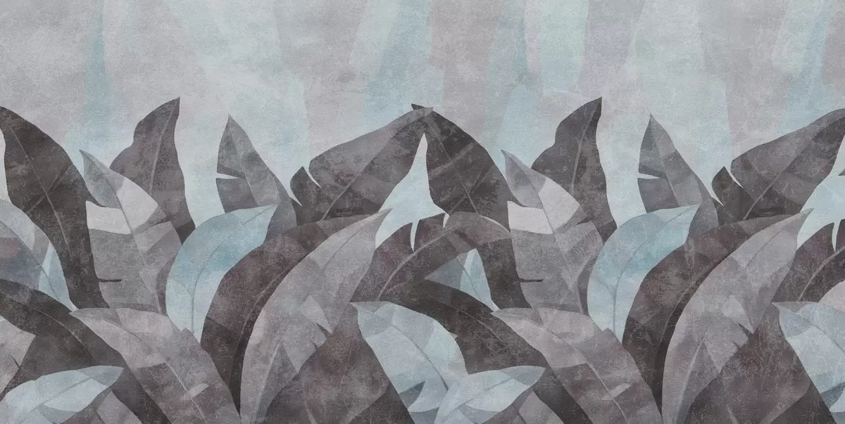 Тапете за зид текстурирани листови банане у нијансама плаве и сиве бр. w04285v2