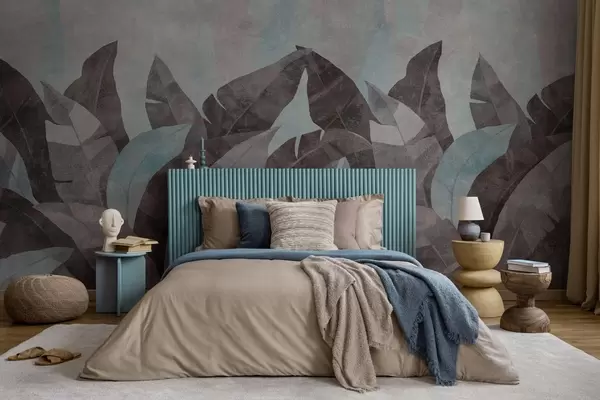 Тапете за зид текстурирани листови банане у нијансама плаве и сиве бр. w04285v2