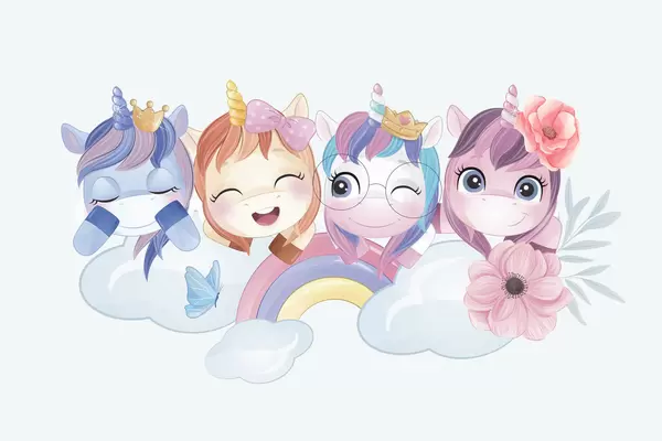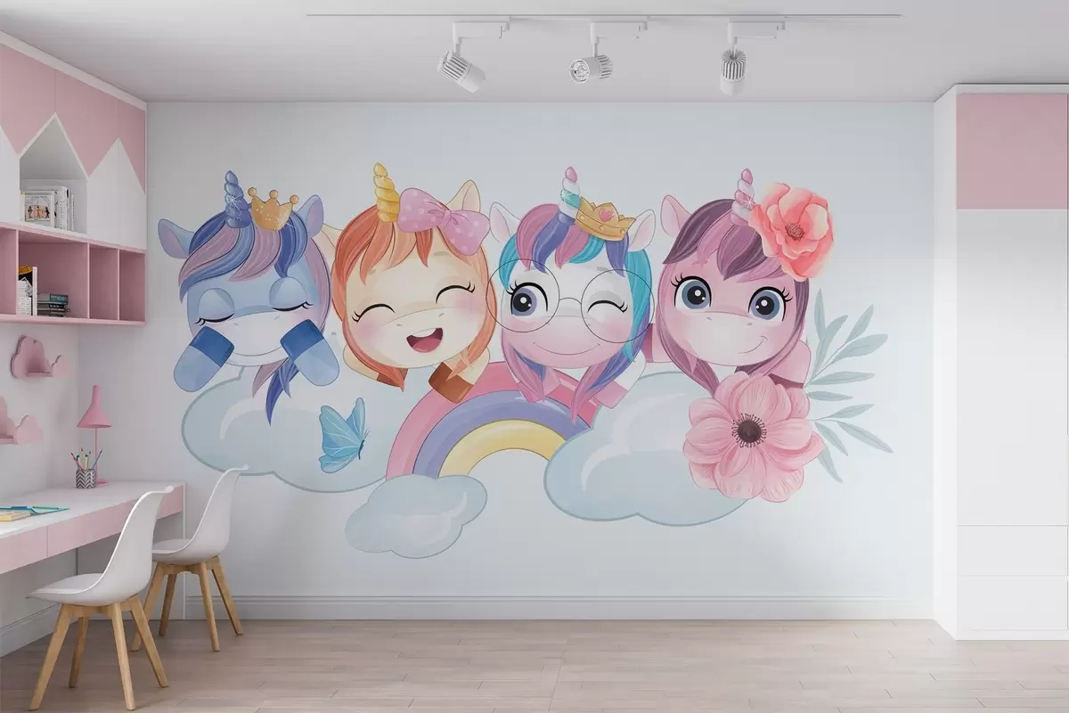 Тапете за зид Слатки једнорози међу облацима и дугама бр. w04298
