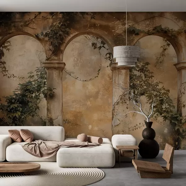 Тапете за зид обојени ретро лукови са бршљаном бр. w04304