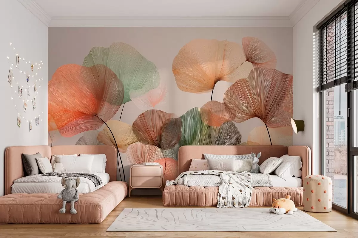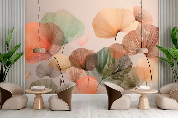 Тапете за зид разнобојни листови гинка са жилама бр. w04305