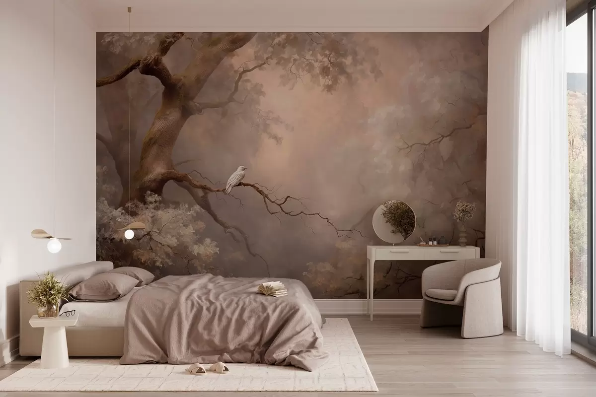 Тапете за зид мистична шума са белом птицом бр. w04314