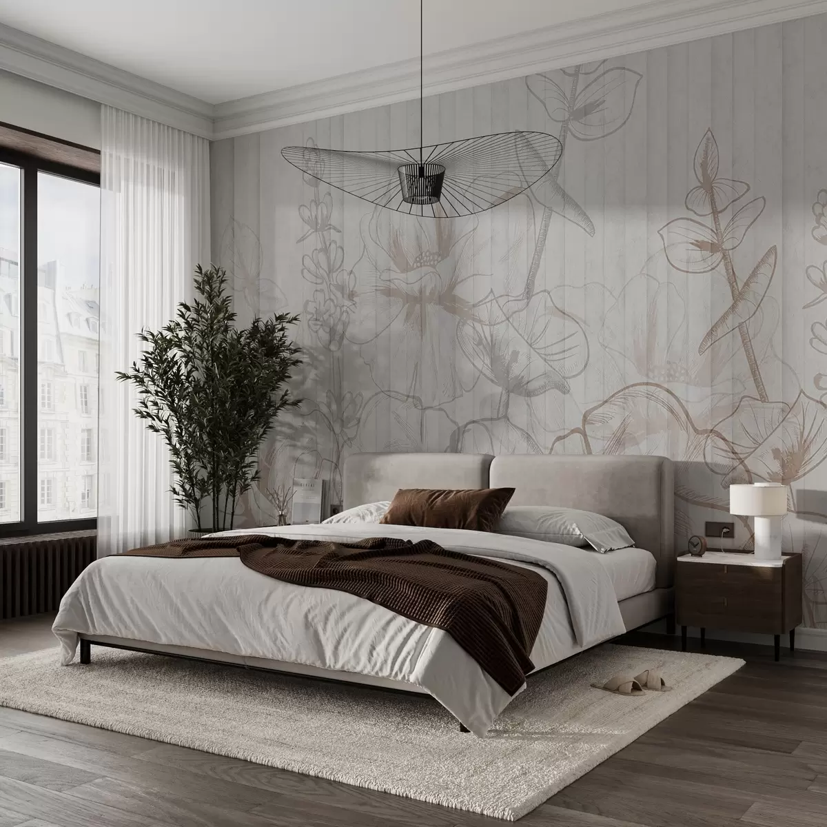 Тапете за зид Силуете биљака на бетонској позадини бр. w04327