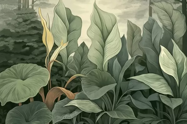 Тапете за зид Илустрација тропских биљака у ботаничком стилу бр. w04347
