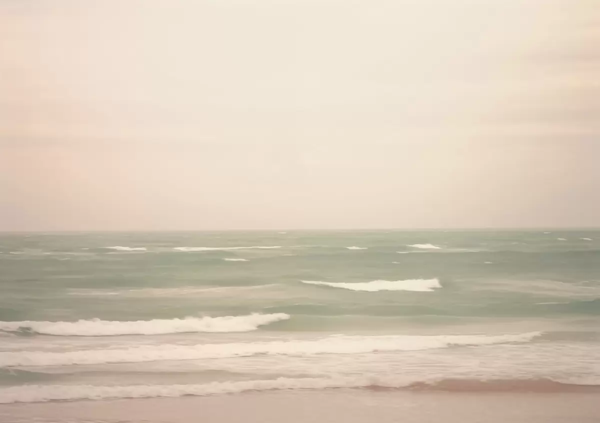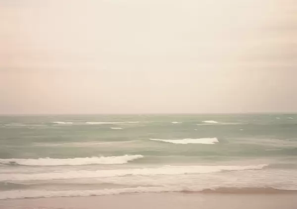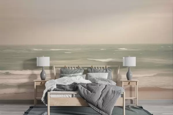 Тапете за зид Нежно ружичасто-зелени морски пејзаж са благим таласима бр. w04348