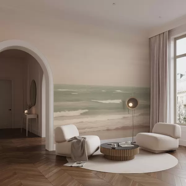 Тапете за зид Нежно ружичасто-зелени морски пејзаж са благим таласима бр. w04348