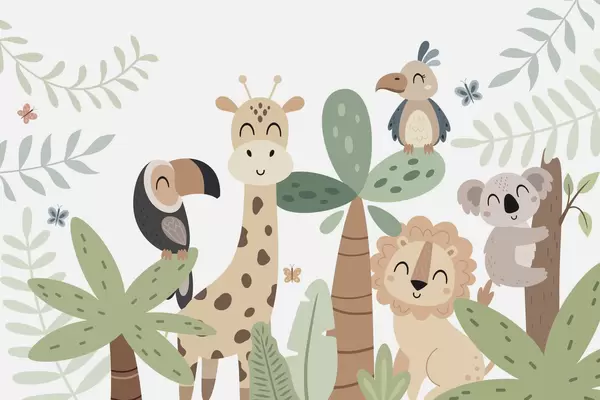 Тапете за зид Слатке животиње у џунгли бр. w04357