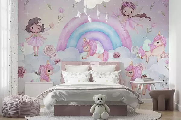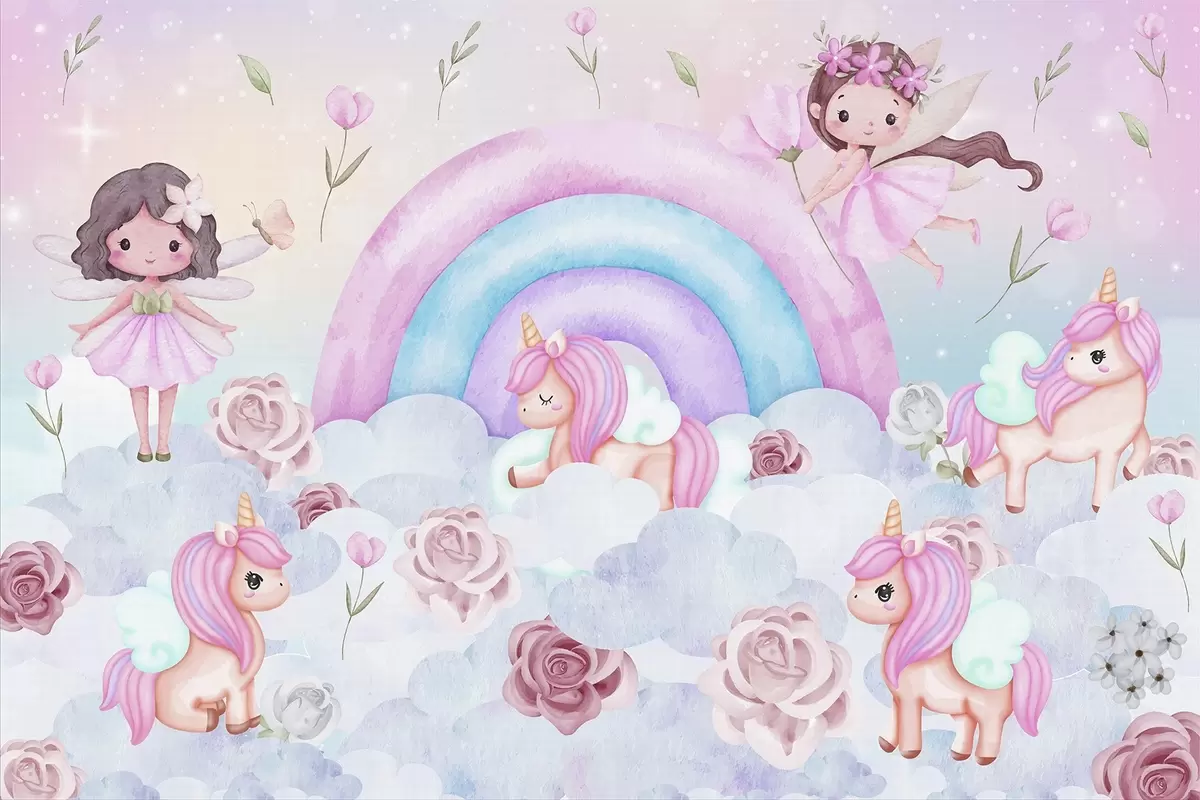 Тапете за зид Виле и једнорози међу облацима и дугама бр. w04371