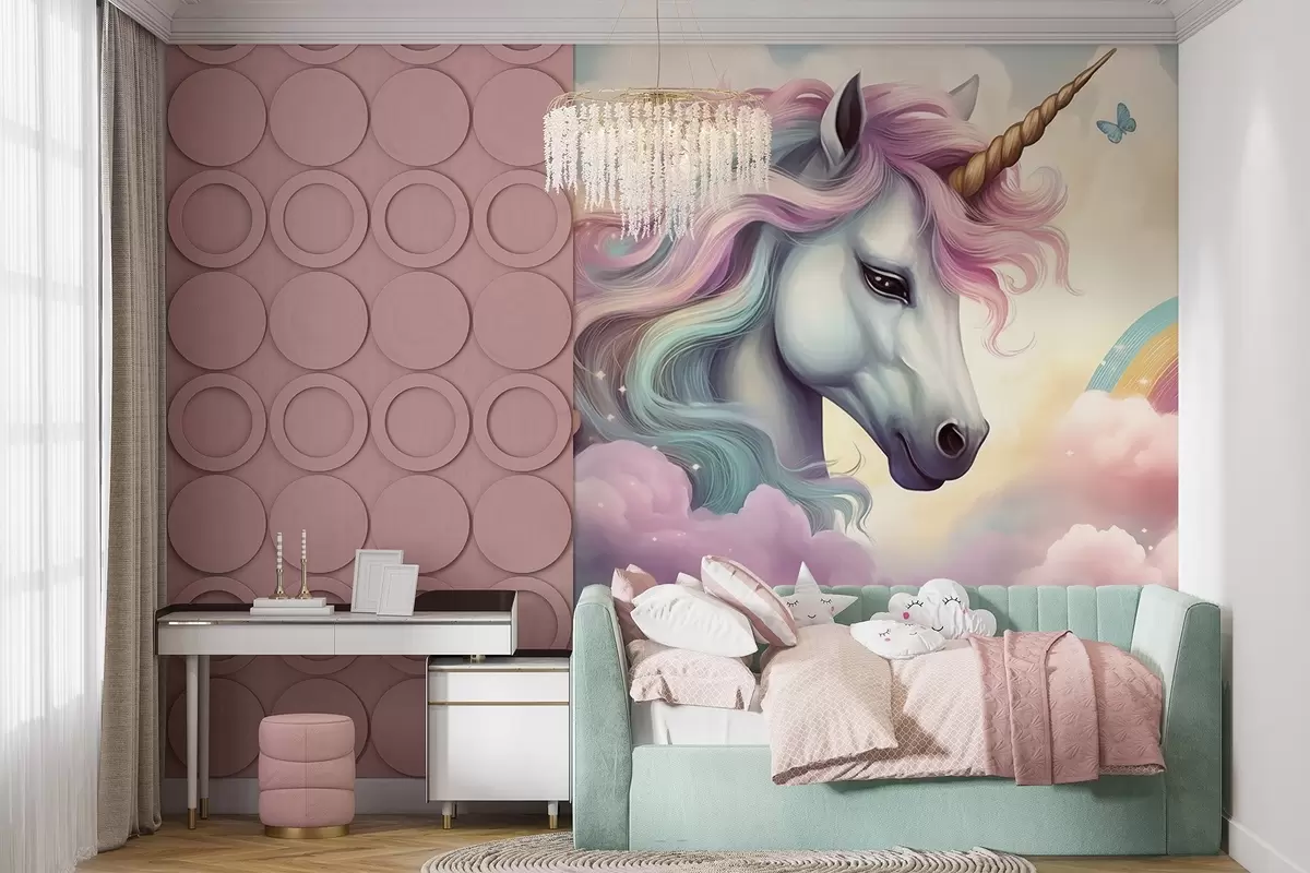 Тапете за зид Једнорог на облачном небу са дугом бр. w04372