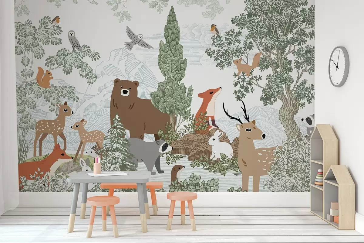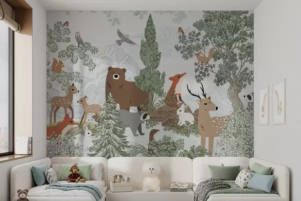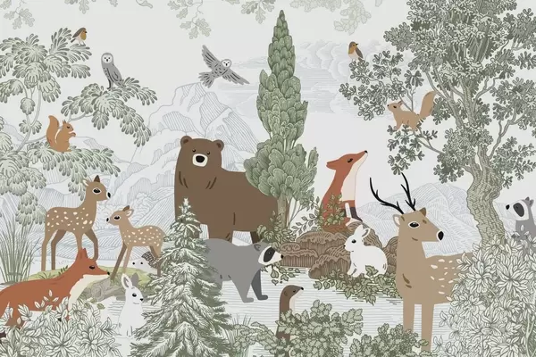 Тапете за зид Животиње и птице у шуми бр. w04383