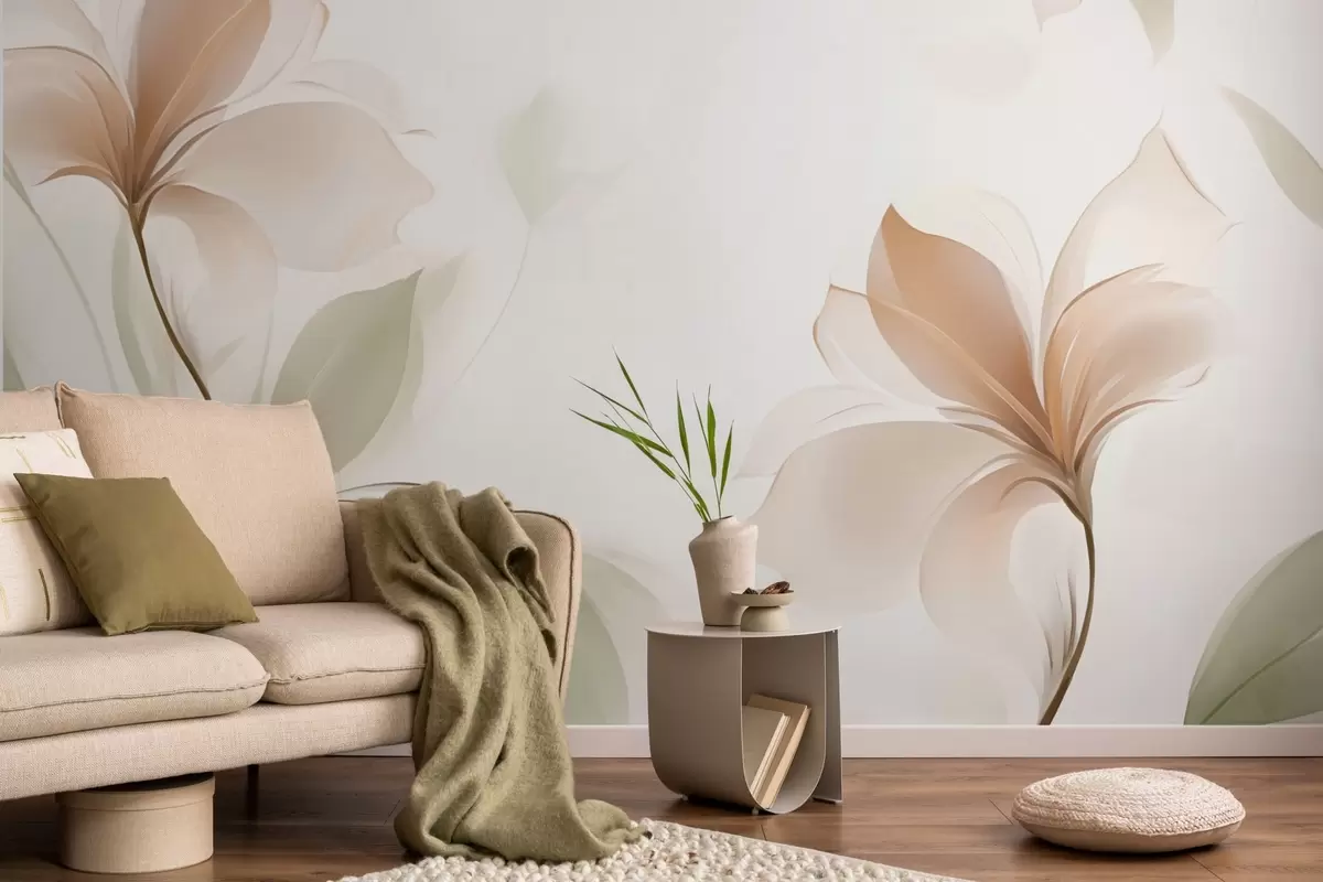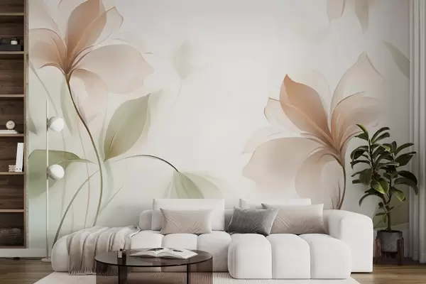 Тапете за зид Прозирно цвеће у топлим беж и ружичастим тоновима бр. w04397