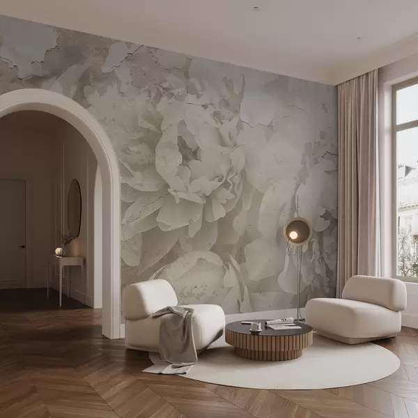 Тапете за зид Божури са текстуром бетона бр. w04407