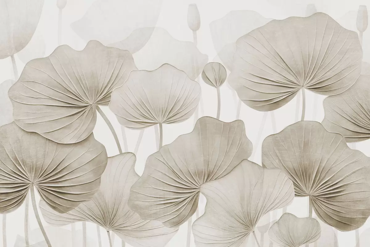 Тапете за зид Листови лотоса са имитацијом избледеле текстуре бр. w04412v1