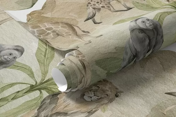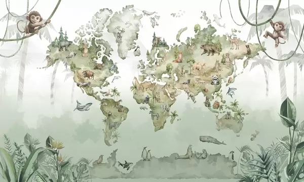 Тапете за зид Илустрована мапа света са животињама и џунглама бр. w04418v1