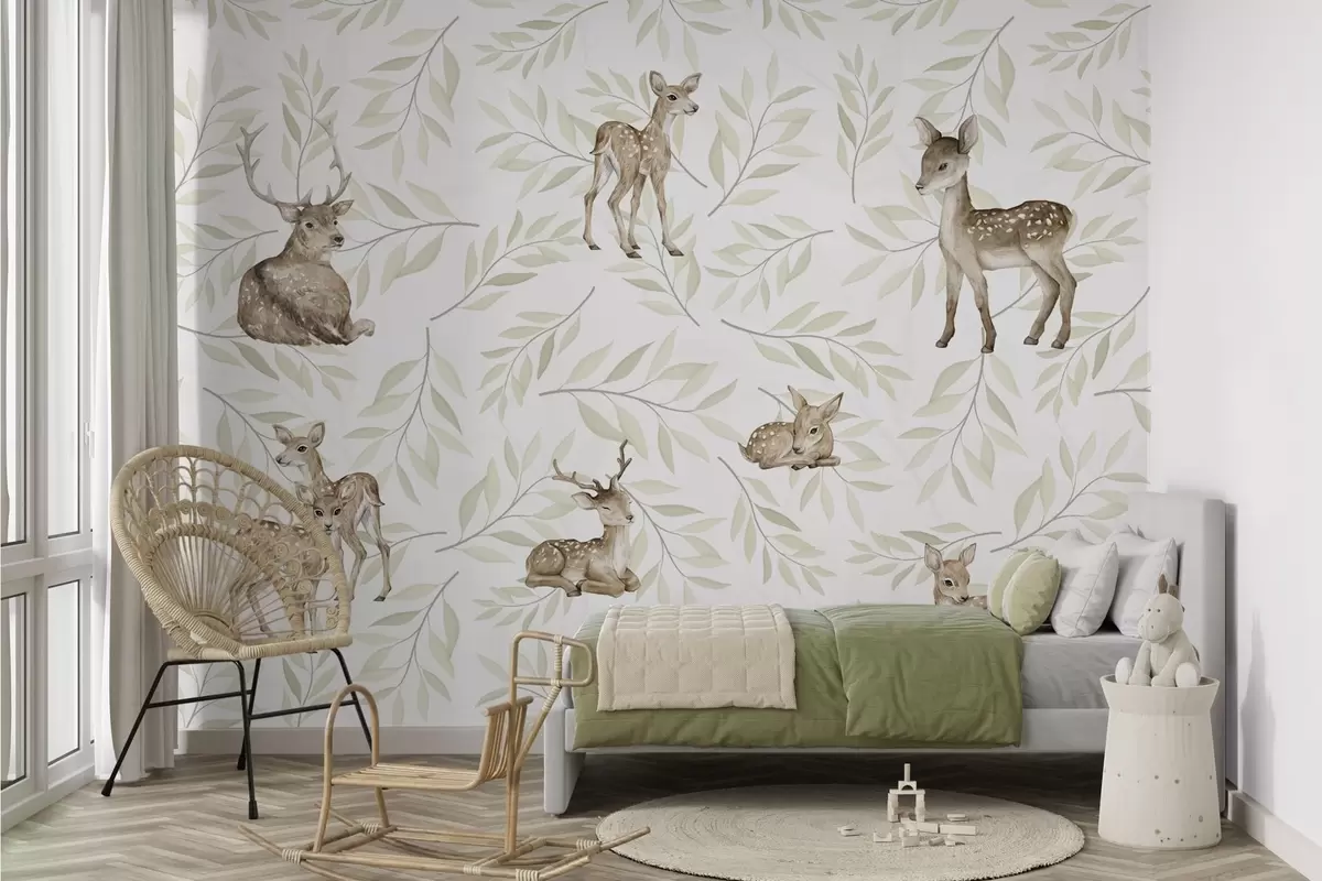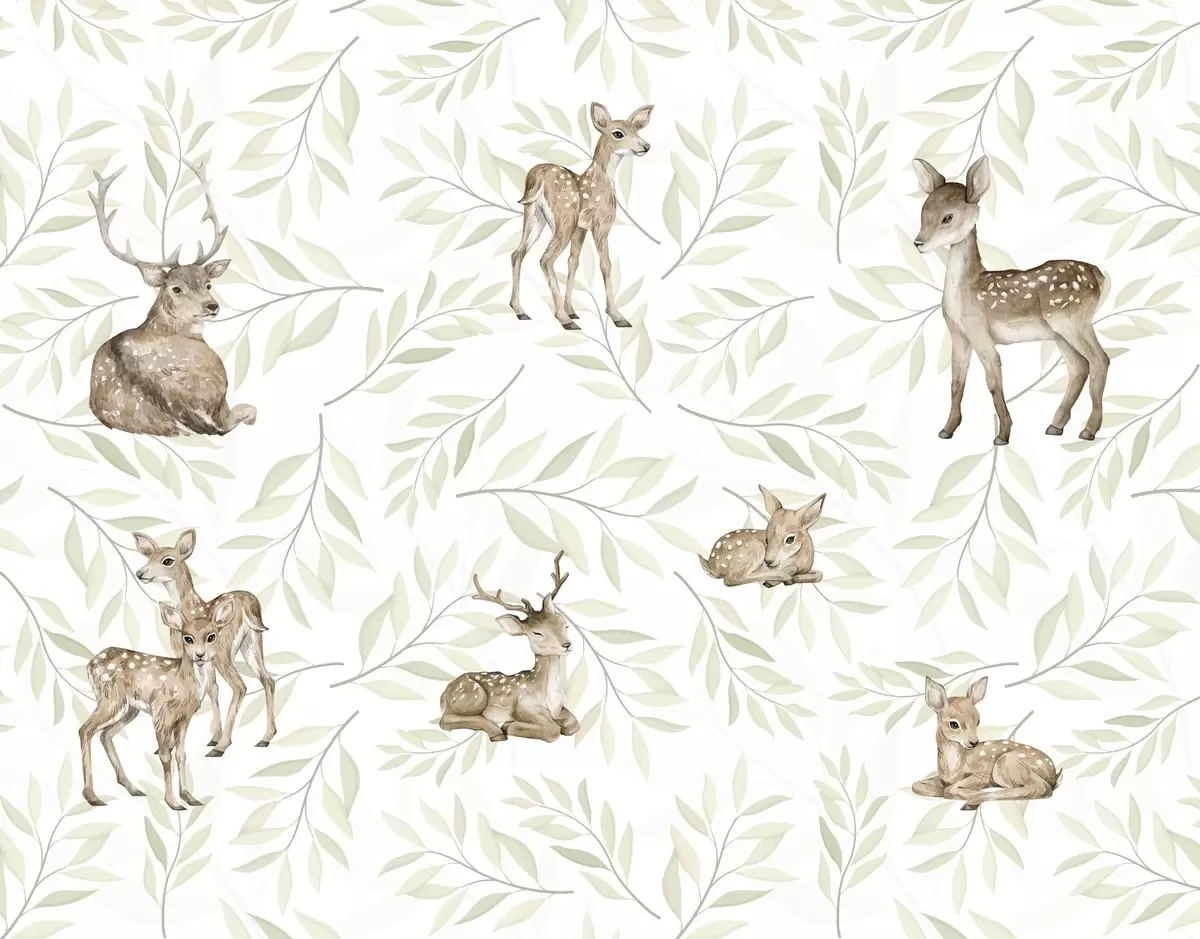 Тапете за зид Лане међу зеленкастим лишћем на белој позадини бр. w04461v1