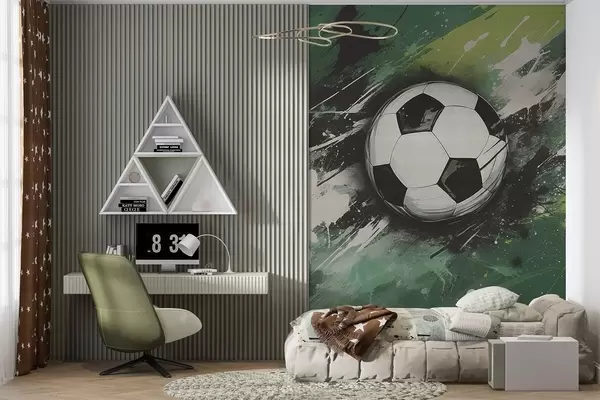Тапете за зид Фудбалска лопта са замагљеним графитима у позадини бр. w04467