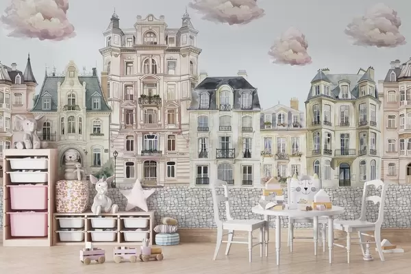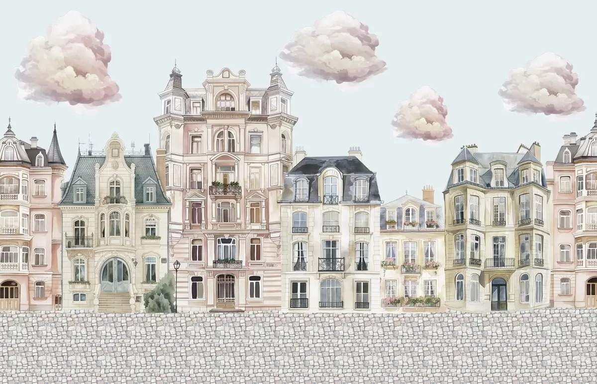Тапете за зид Шарене куће, облаци бр. w04474v1
