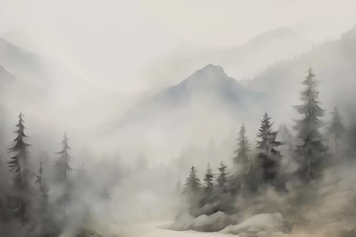 Тапете за зид Шума у магли на позадини планина бр. w04493