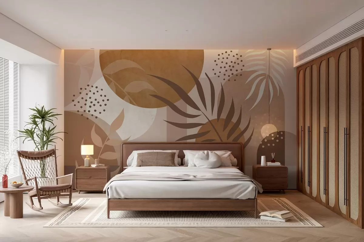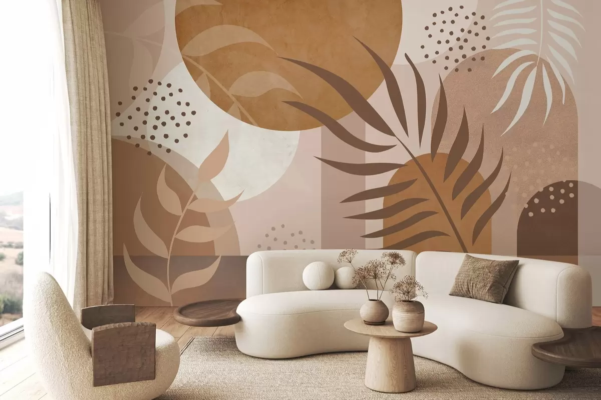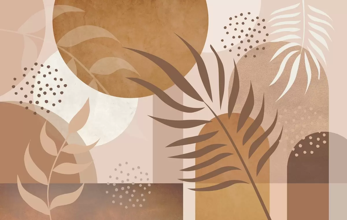 Тапете за зид Савремена апстракција са биљкама у смеђим и беж тоновима бр. w04497