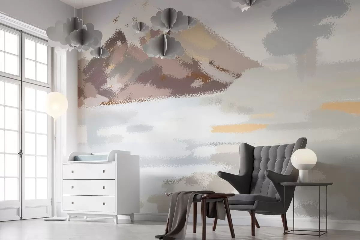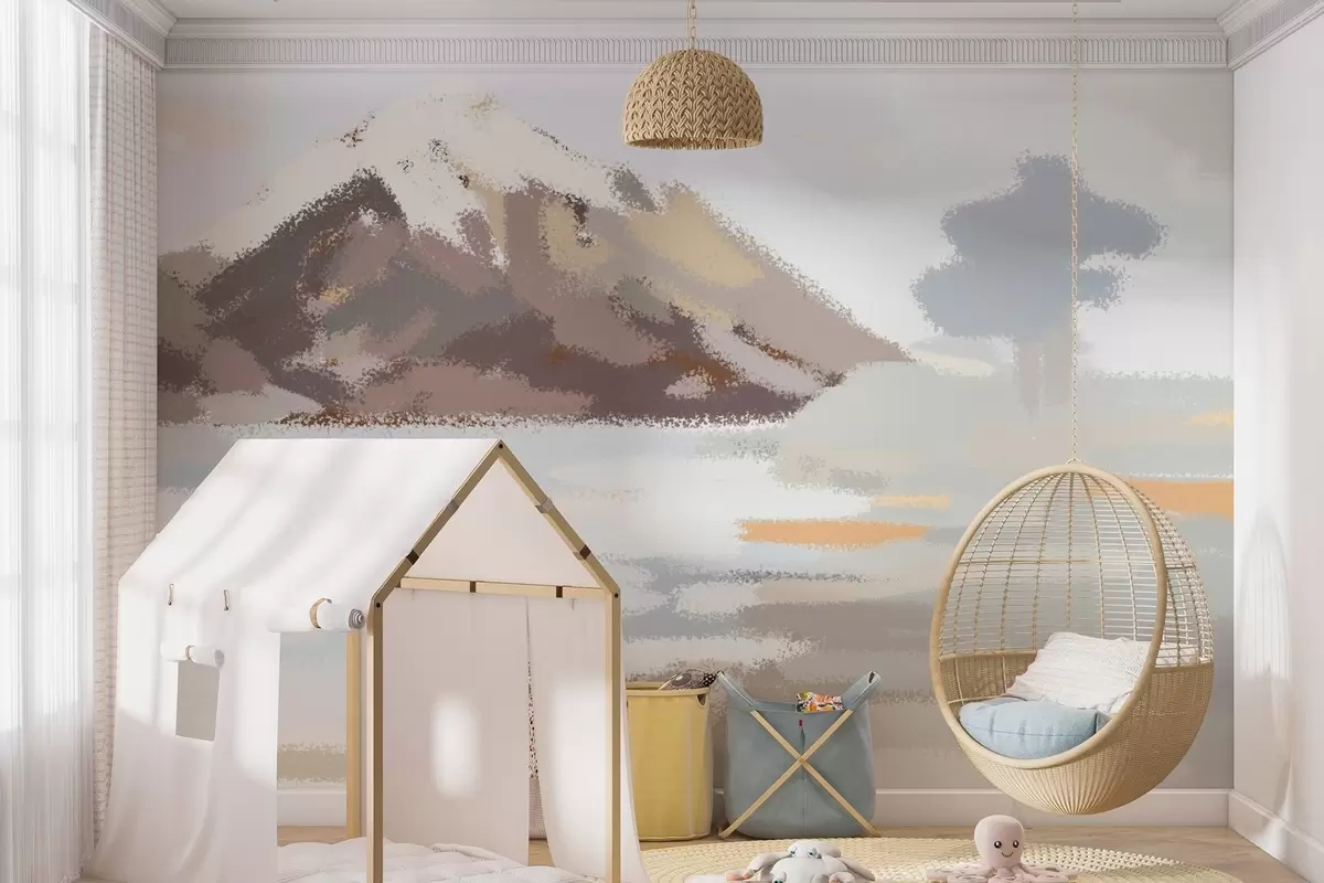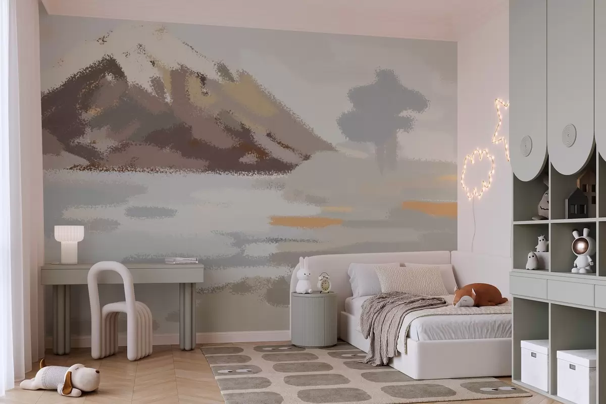 Тапете за зид апстрактни пејзаж у стилу дечјег цртежа бр. w04498