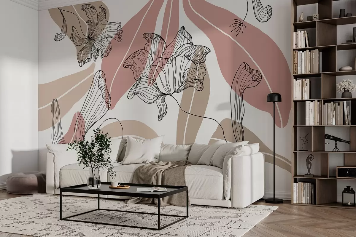 Тапете за зид апстрактни листови и цветови у прашкастим и беж тоновима бр. w04499