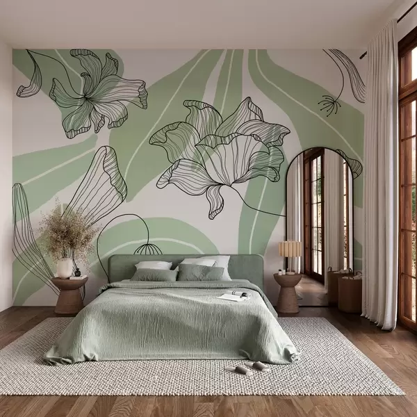 Тапете за зид апстрактно лишће и цвеће у зеленим тоновима бр. w04499v1