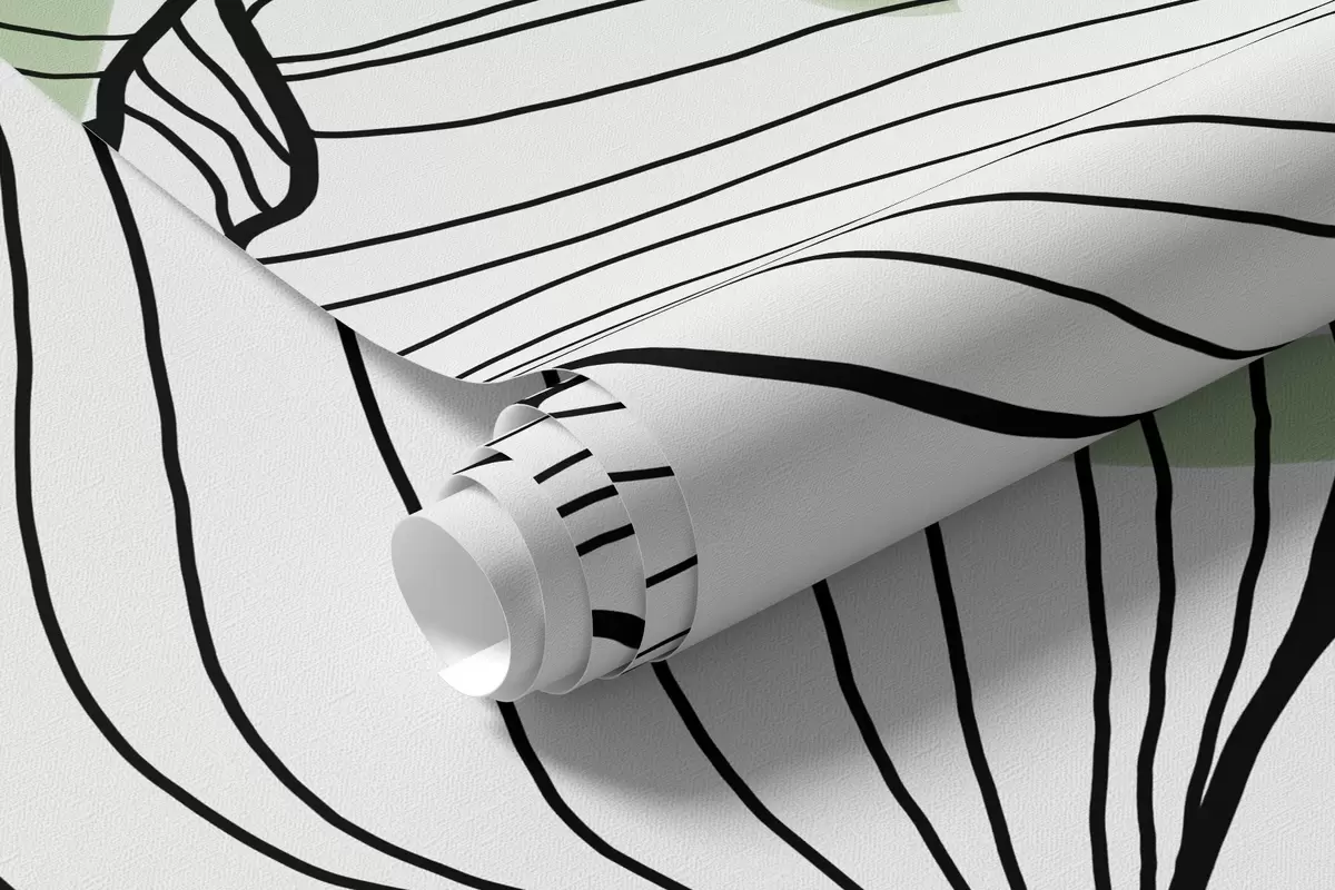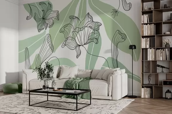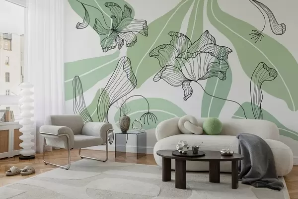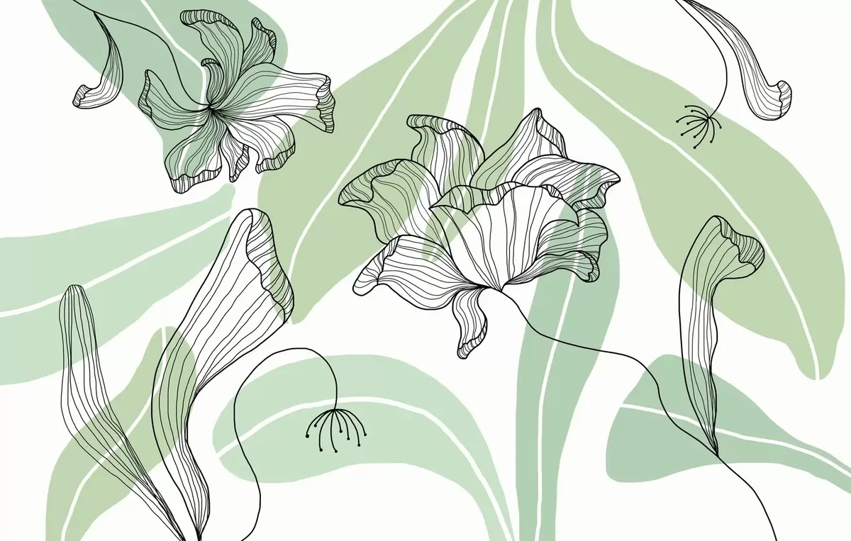 Тапете за зид апстрактно лишће и цвеће у зеленим тоновима бр. w04499v1