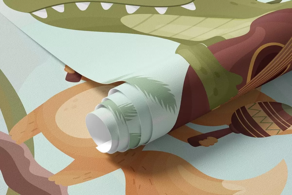 Тапете за зид Животиње са музичким инструментима насупрот тропског пејзажа бр. w04505