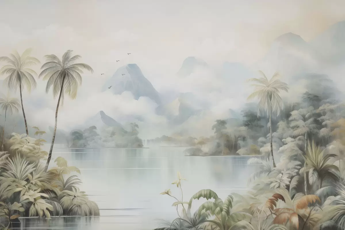 Тапете за зид Река у џунгли близу планина бр. w04536