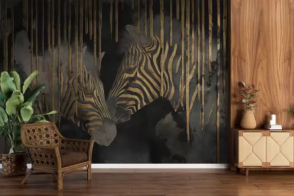 Тапете за зид Зебре са апстрактном црном позадином бр. w04548