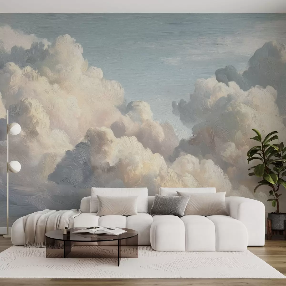 Тапете за зид Облаци на меком плавом небу са лаганом текстуром бр. w04550v2