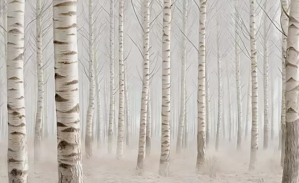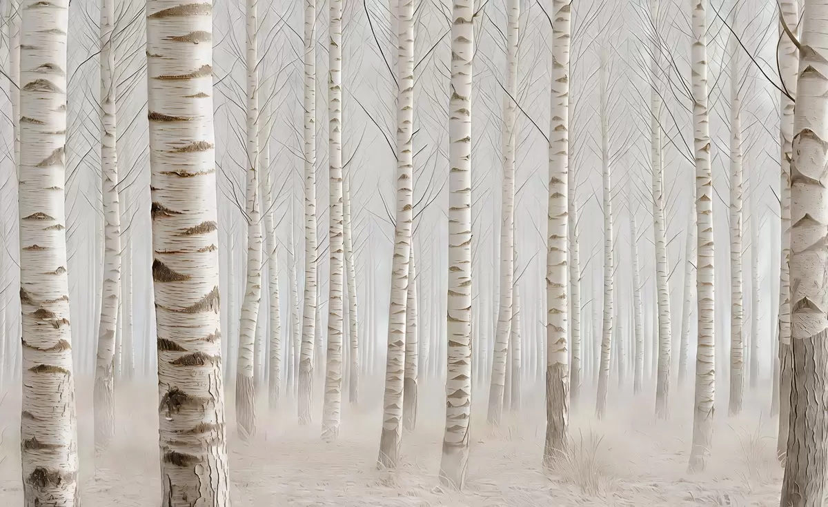 Тапете за зид Брезова шума у магли, лагани минимализам бр. w04574