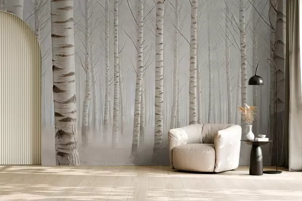 Тапете за зид Брезова шума у магли, лагани минимализам бр. w04574