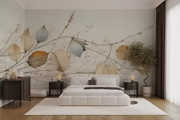 Тапете за зид Нежне гране са листовима у беж тоновима бр. w04579
