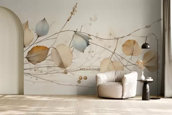 Тапете за зид Нежне гране са листовима у беж тоновима бр. w04579