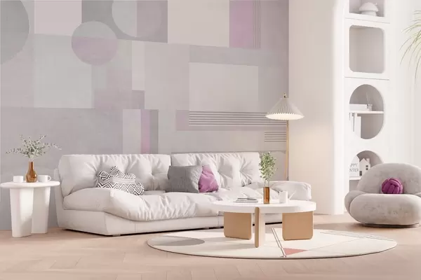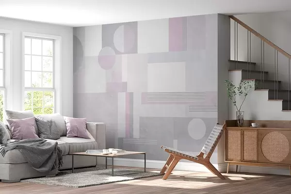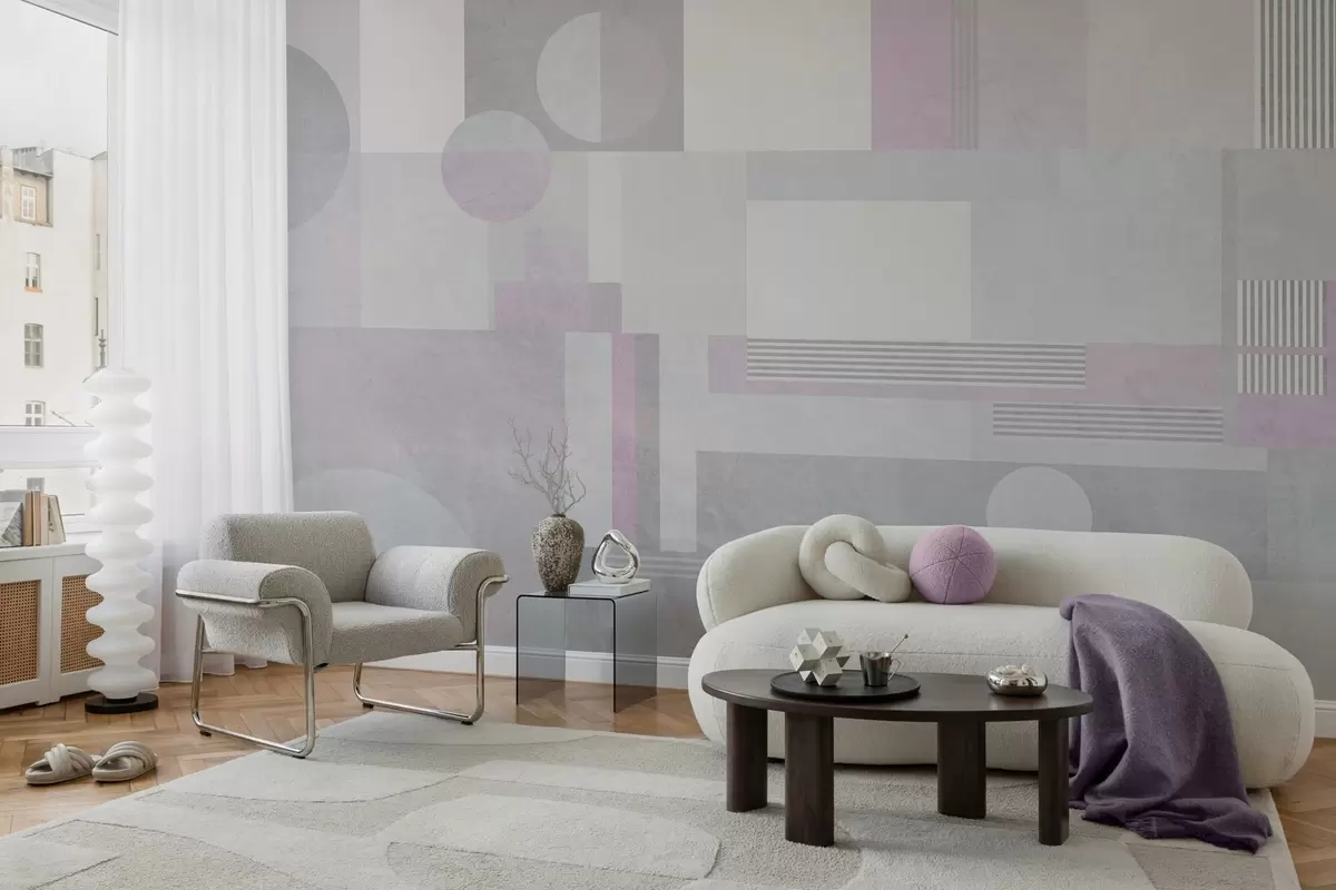 Тапете за зид апстрактна геометрија у сивим и лаванда тоновима бр. w04635v1