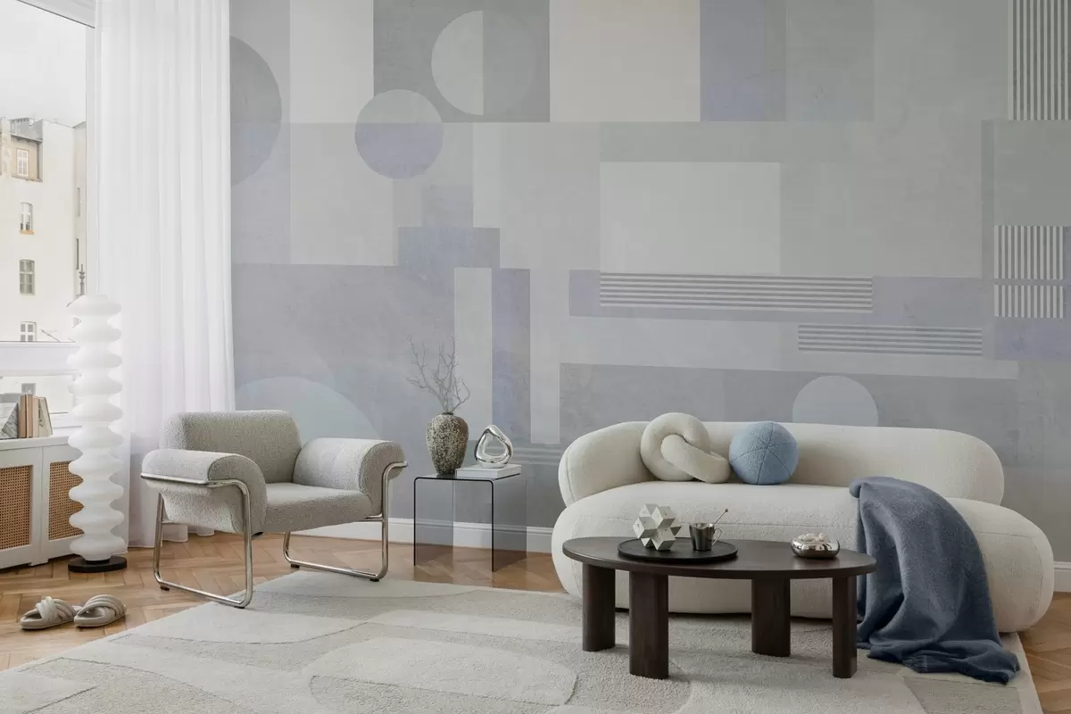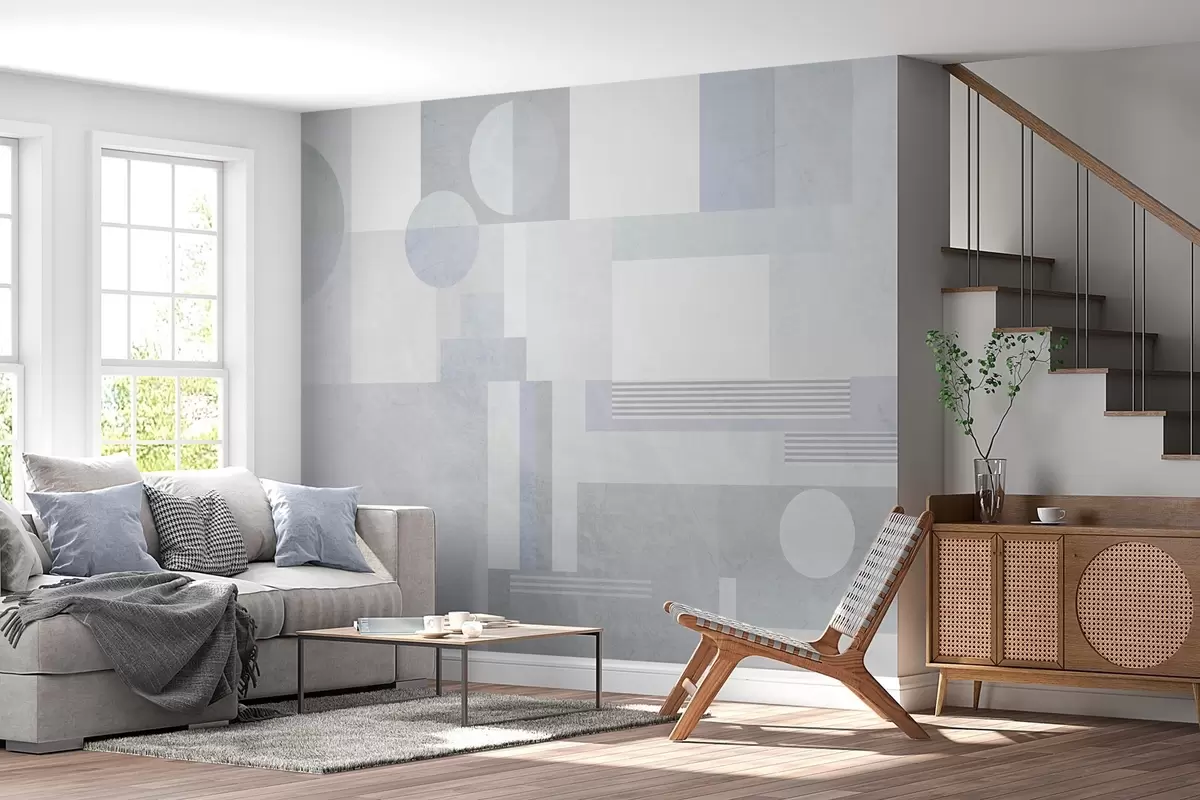 Тапете за зид апстрактна геометрија у сиво-плавим тоновима бр. w04635v2
