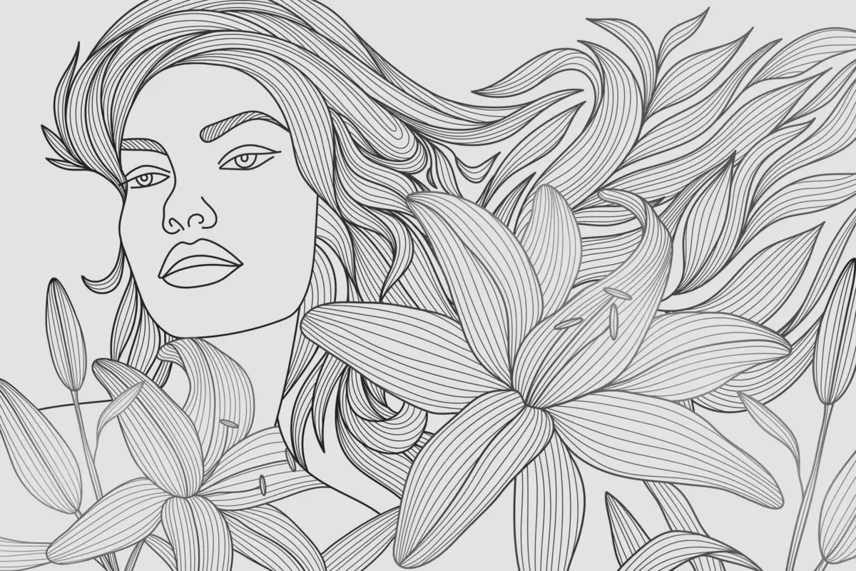 Тапете за зид Портрет девојке у цветовима љиљана бр. w04689