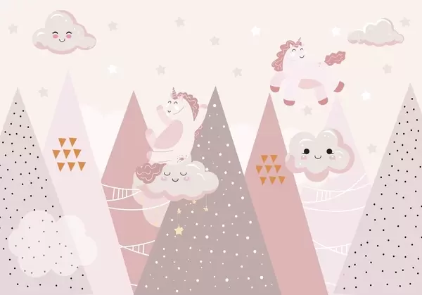 Тапете за зид Пони у планинама са облацима бр. w04741