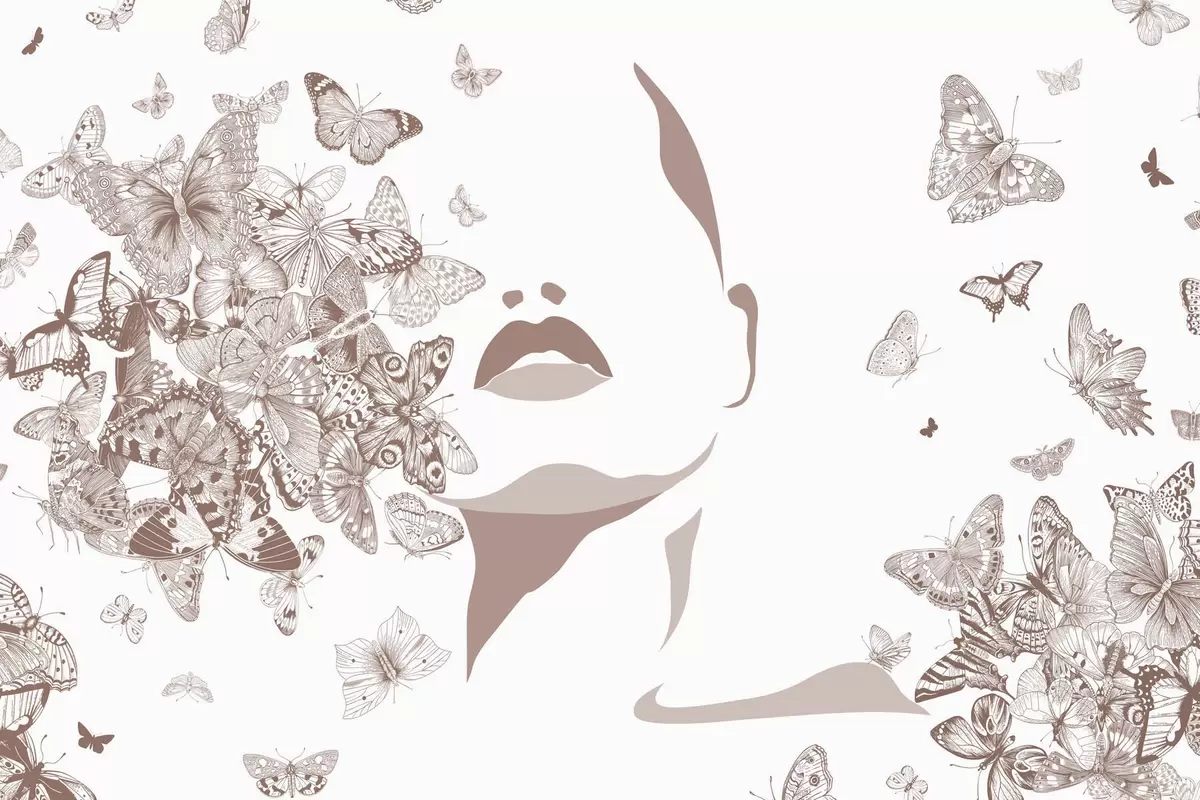 Тапете за зид Силуета лица међу лептирима бр. w04778